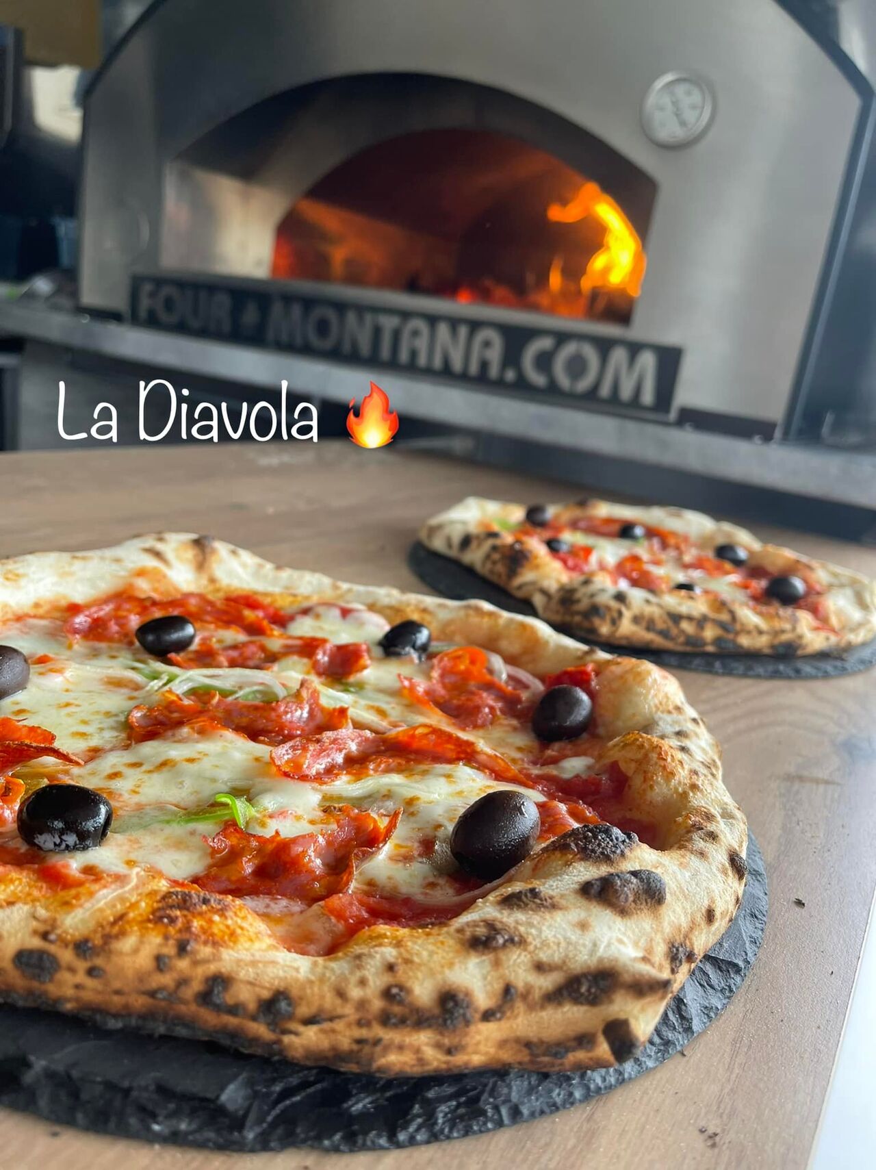 Pizzas napolitaines cuites au feu de bois, avec une pâte artisanale au levain, venez déguster des pizzas savoureuses réalisées avec des produits de haute qualité.